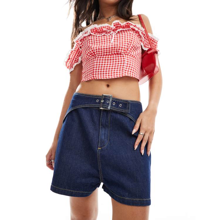 ASOS DESIGN denim buckle detail short in mid blue ASOS Very well made.