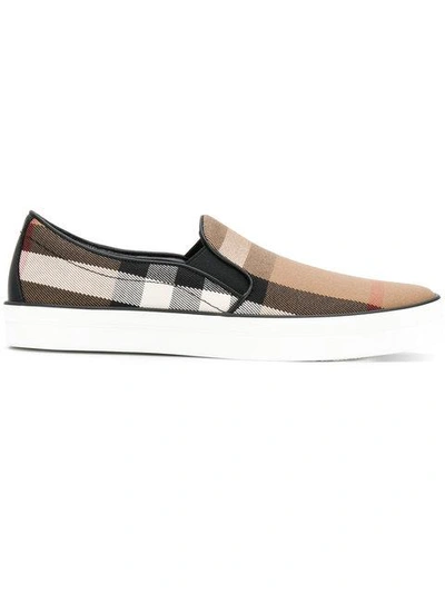 Burberry Gauden Check Leather trimmed Slip on Sneakers In Khaki ModeSens Very well made.