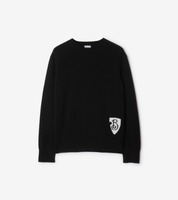 B Shield Wool Blend Sweater in Black Men Alpaca Burberry Official Very well made.