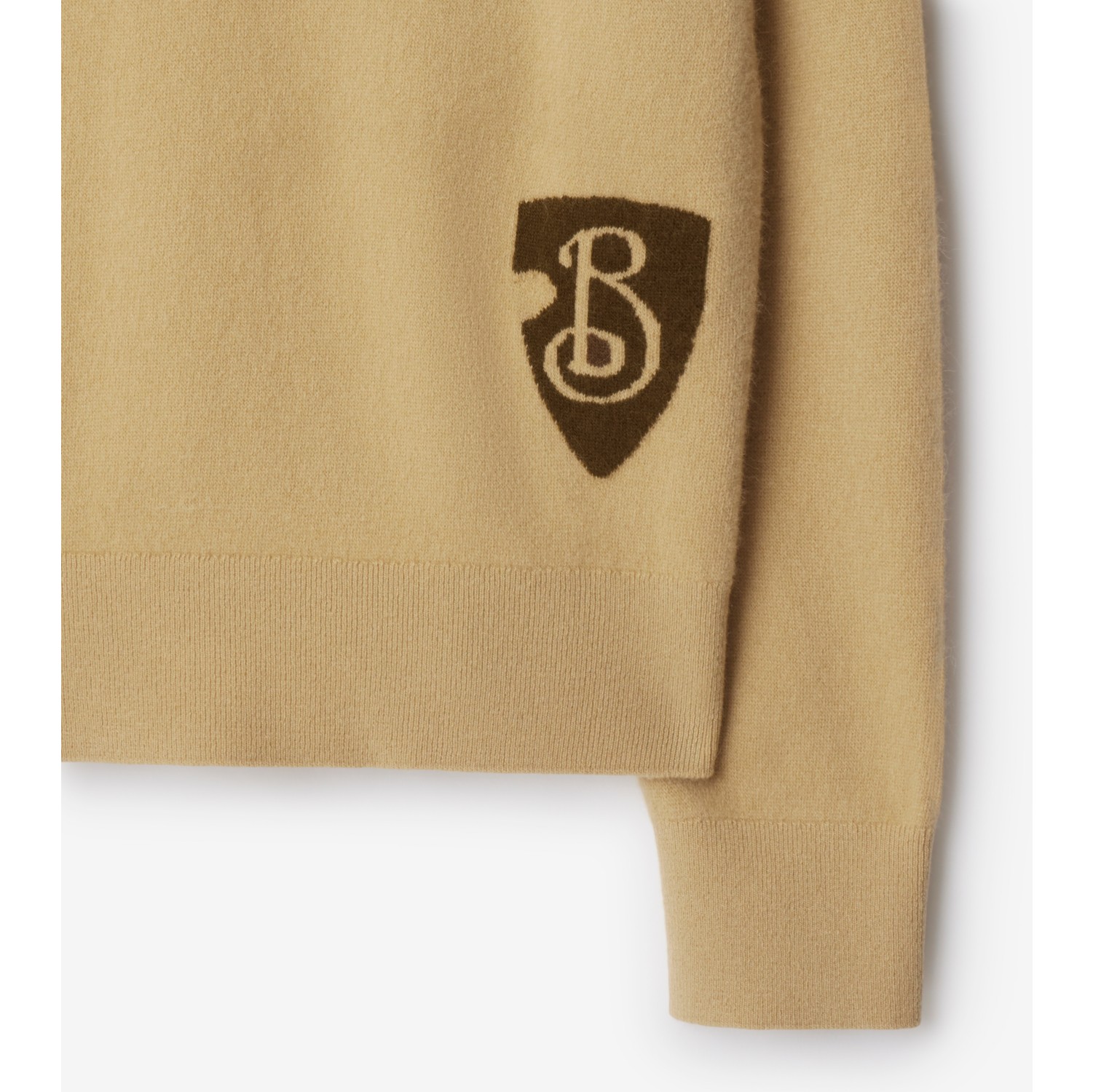 B Shield Wool Blend Sweater in Sand Men Burberry Official Very well made.