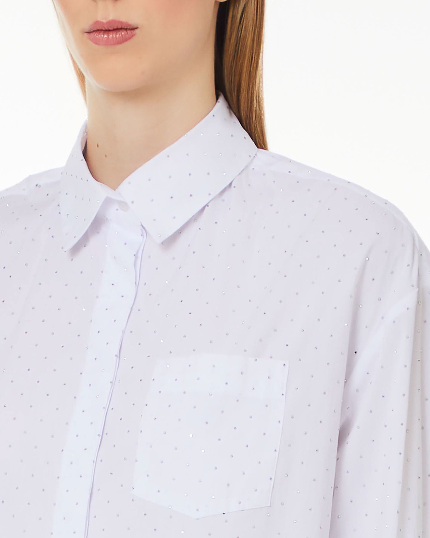 Camicia bianca dalla linea ampia in popeline di puro cotone con strass applicati all over Very well made.