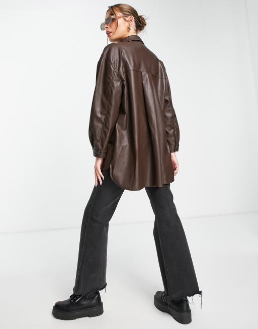 Stradivarius Camicia giacca in pelle sintetica color cioccolato ASOS Very well made.